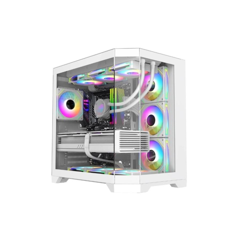 صندوق الكمبيوتر المثالي لعشاق الألعاب، مزود بـ 7 مراوح ARGB لتوفير تهوية مثالية وتحكم كامل بالإضاءة. يدعم كافة أنواع كروت الشاشة والمبردات المائية بأحجام متعددة، مع مساحة واسعة وتركيب سهل.