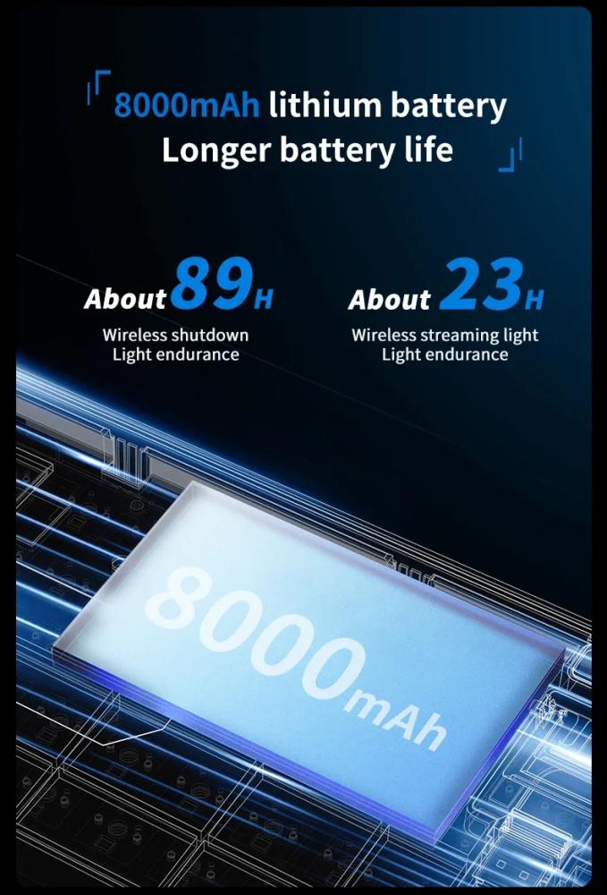- الكيبورد يأتي ببطارية عملاقة بحجم 8000 ملي امبير بتعطيك فترة استخدام طويلة جدا في الشحنه الواحدة