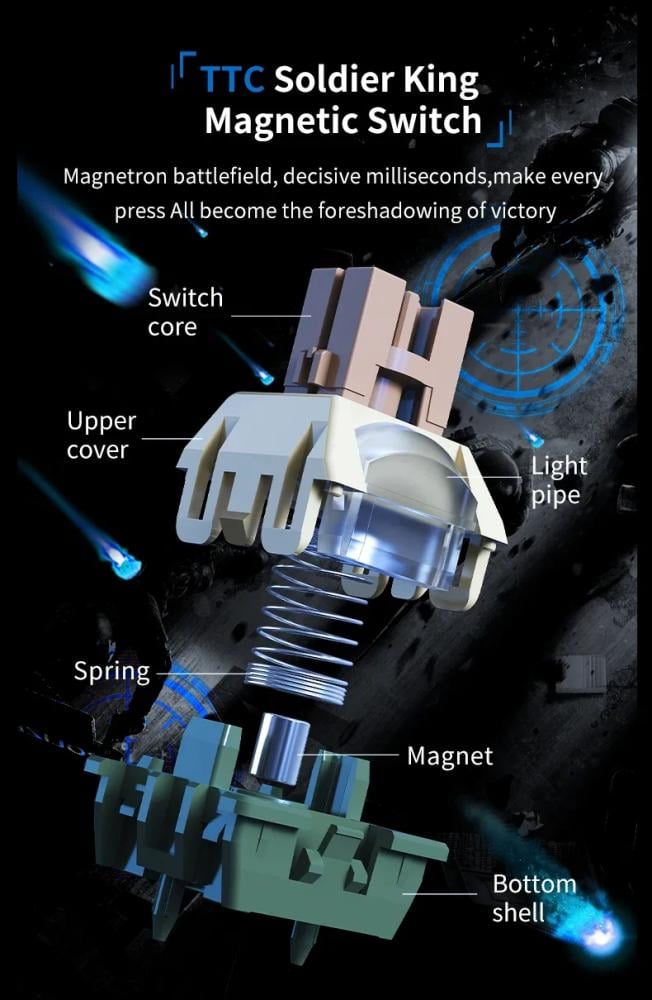 - تمنحك المفاتيح المغناطيسية شعورًا رائعًا مع كل ضغطة، بالإضافة إلى عمر افتراضي طويل مقارنة بالكيبوردات العادية. هذا يجعل الكيبورد خيارًا رائعًا لكل من يرغب في استخدامه للألعاب أو العمل الطويل.