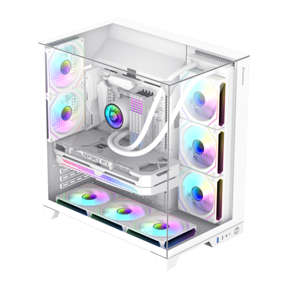 - عدد المراوح: 8 مراوح بنظام ARGB (6 مراوح لإدخال الهواء - ريش عكسية، و2 مروحة للإخراج).