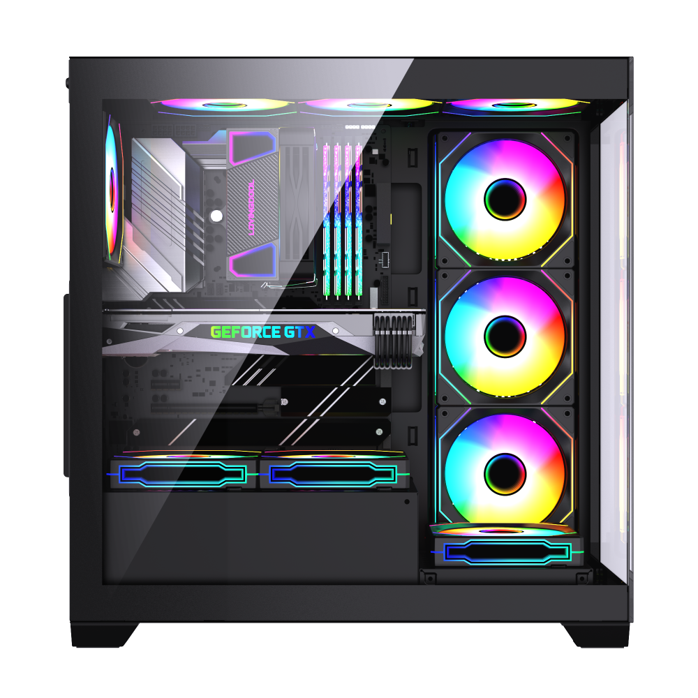 - اضاءة جانبية على اطراف المراوح مع مرايا عاكسة بتضيف لمسة جمالية على الكمبيوتر
